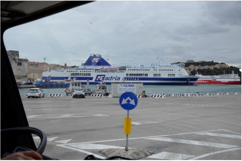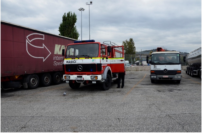 Cesta pro nás začala již před odjezdem, kdy jsme s Pardubickým krajem museli dát dohromady administrativní část, pak následoval svoz věcí a cisterny na jedno místo, kde proběhlo seznámení s vozidlem a naložení. V pondělí 20.10. jsme se večer sešli všichni tři řidiči, kdy nás starosta KSH svezl na místo odjezdu a vyrazili jsme na cestu. Po půlnoci jsme překročili hranice s Rakouskem a pokračovali celou noc do Itálie, hranice jsme překročili kolem 8 hodiny ráno. Cesta pokračovala do Italské Ancony, kam jsme dorazili asi v 17 hodin (s 24 hodinovým předstihem), našli jsme parkování pro cisternu a šli se ubytovat. Nalodění na trajekt bylo plánováno až na čtvrtek 23.10. Tím, že nám cesta ubíhala bez problémů a technických poruch jsme získali jeden den volna v Anconě.