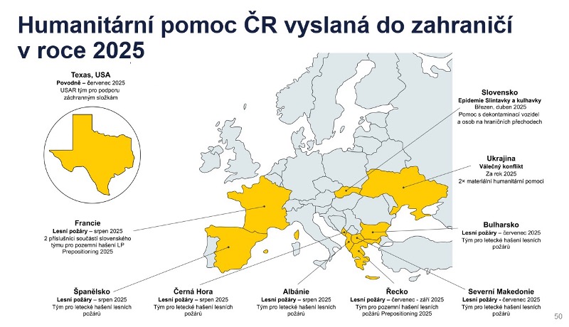 Pokračovala také materiální humanitární pomoc Ukrajině, kam byla v roce 2025 poskytnuta pomoc ve dvou vlnách.