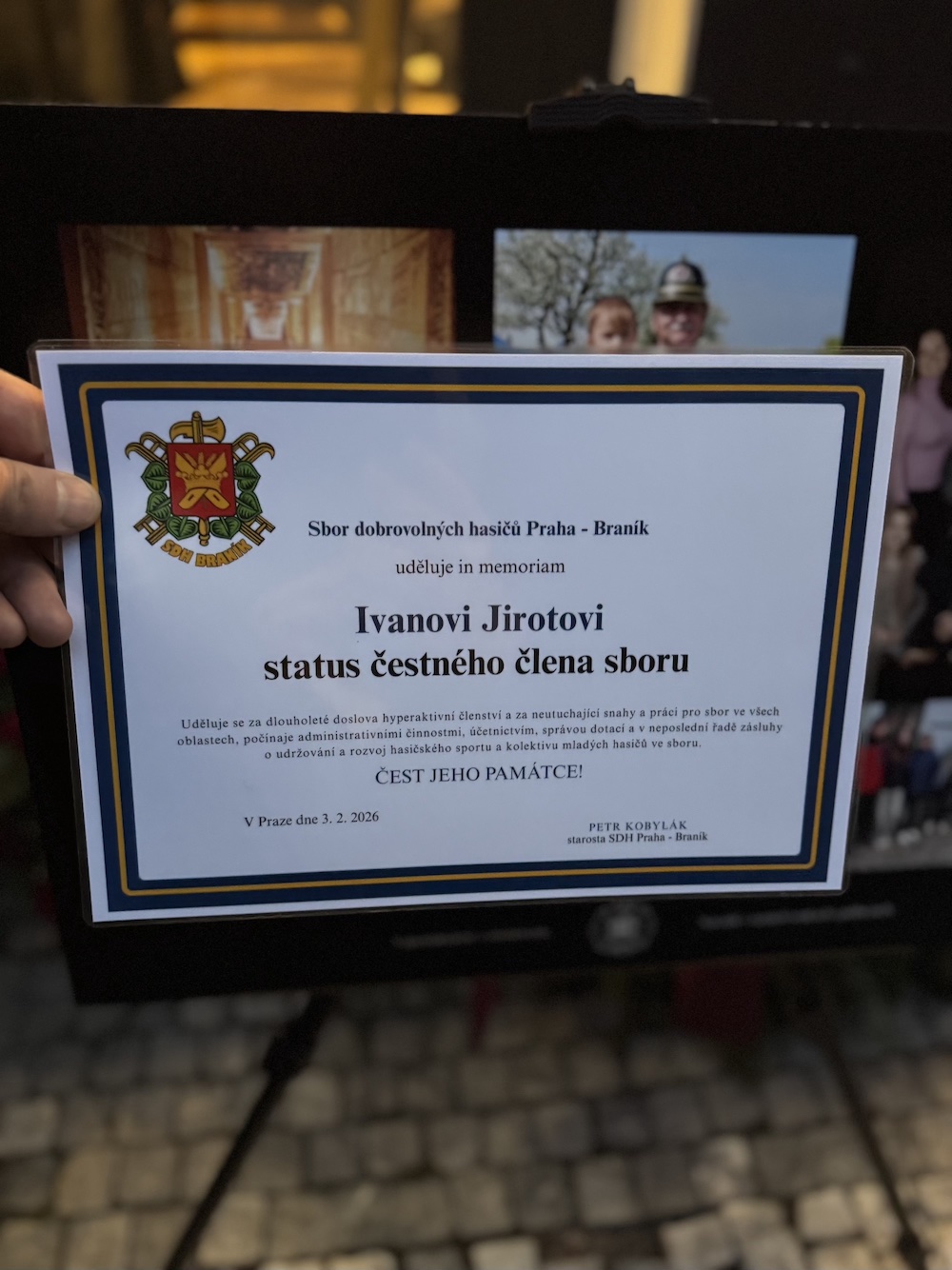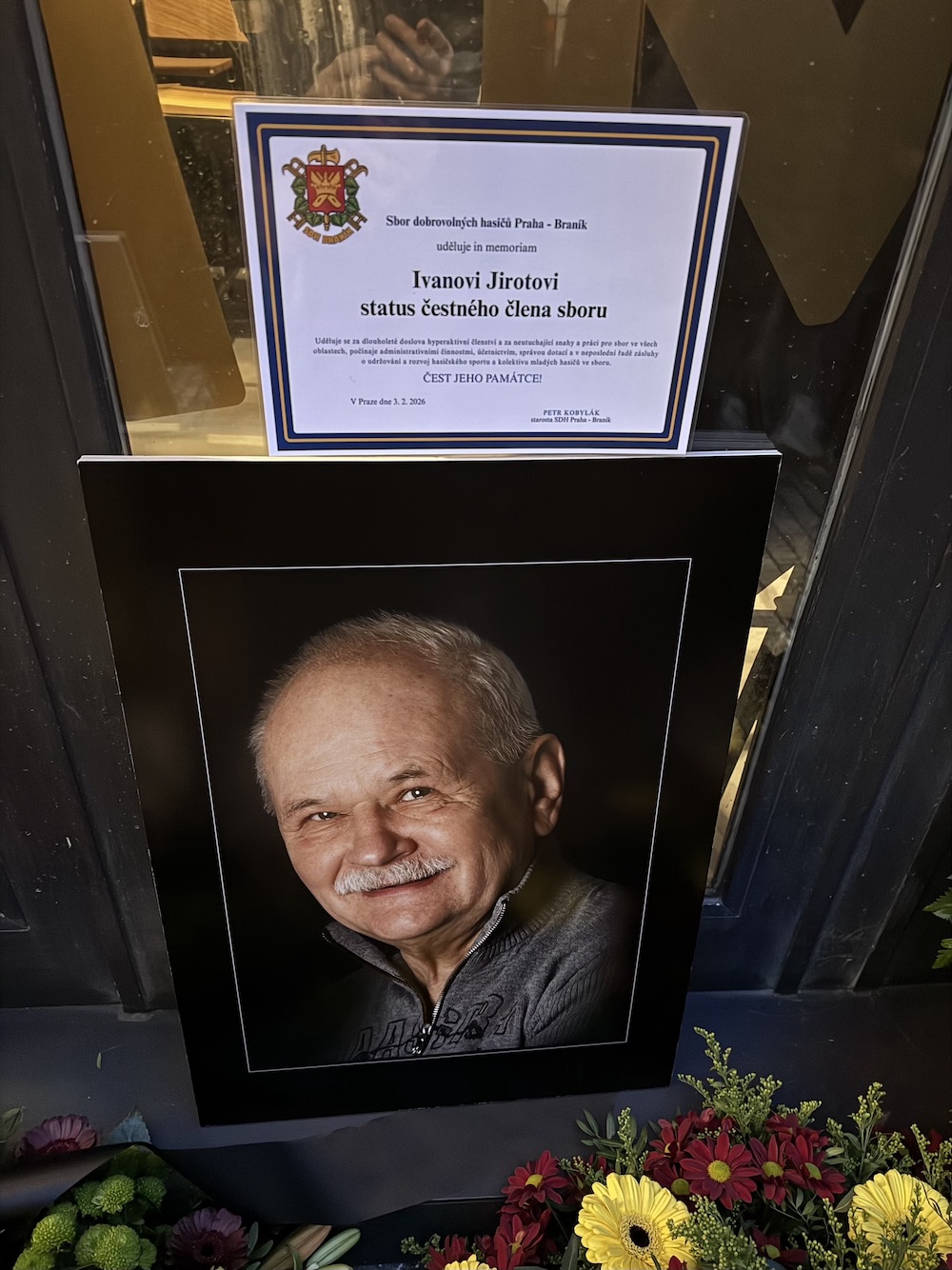 Velmi si vážíme podpory, ochoty a důstojné atmosféry, která provázela jak pohřeb dne 3. února 2026, tak i následné rozloučení v Hasičském domě, při němž byl Ivan Jirota jmenován čestným členem SDH Braník.