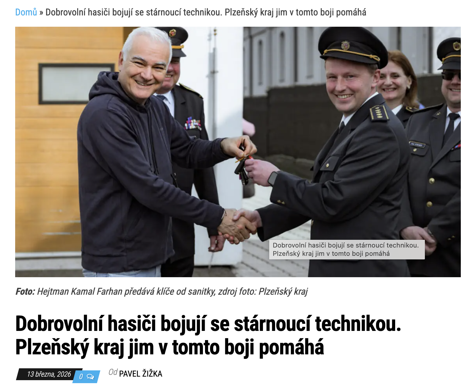 „Dobrovolní hasiči jsou pro naše obce nepostradatelní. Jsem rád, že sanitky, které už záchranná služba vyřadila z provozu, mohou dál pomáhat právě jim. Je to praktická pomoc, která obcím ušetří peníze a zároveň podpoří práci lidí, kteří se starají o bezpečí druhých,“ uvedl hejtman Kamal Farhan při předání.