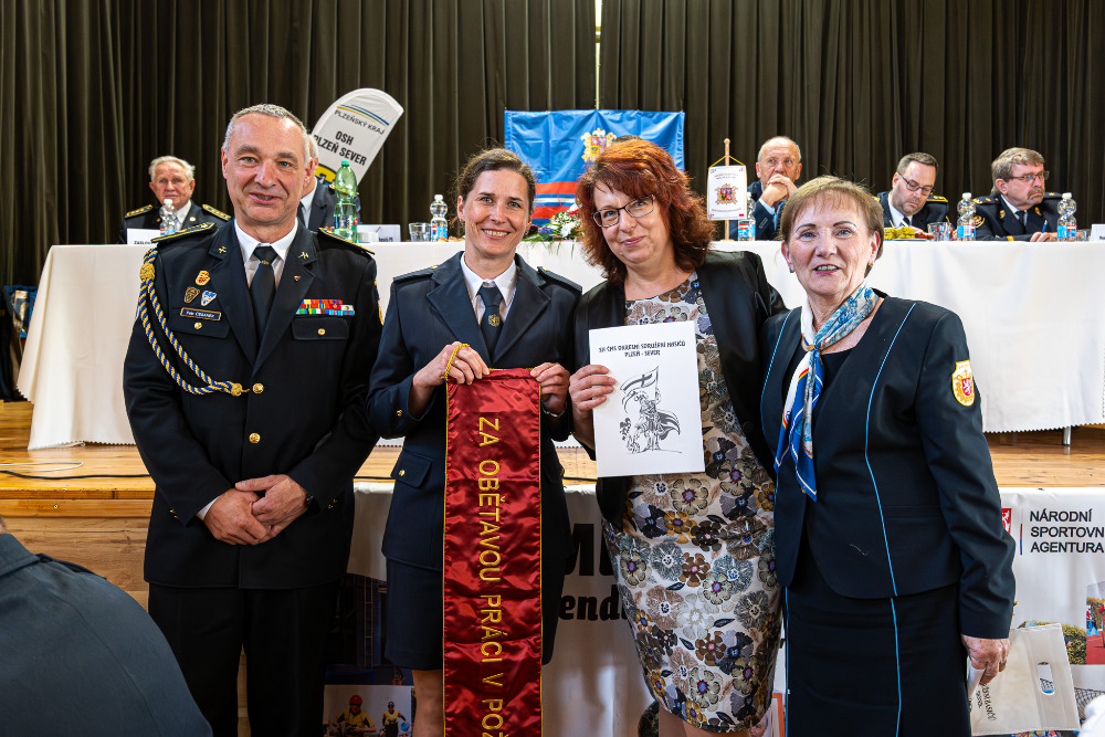 Marie Severová z SDH Manětín převzala Záslužnou medaili II. stupně OSH za dlouholetou obětavou a svědomitou práci v kontrolních orgánech, z toho 15 let na OSH Plzeň-sever.